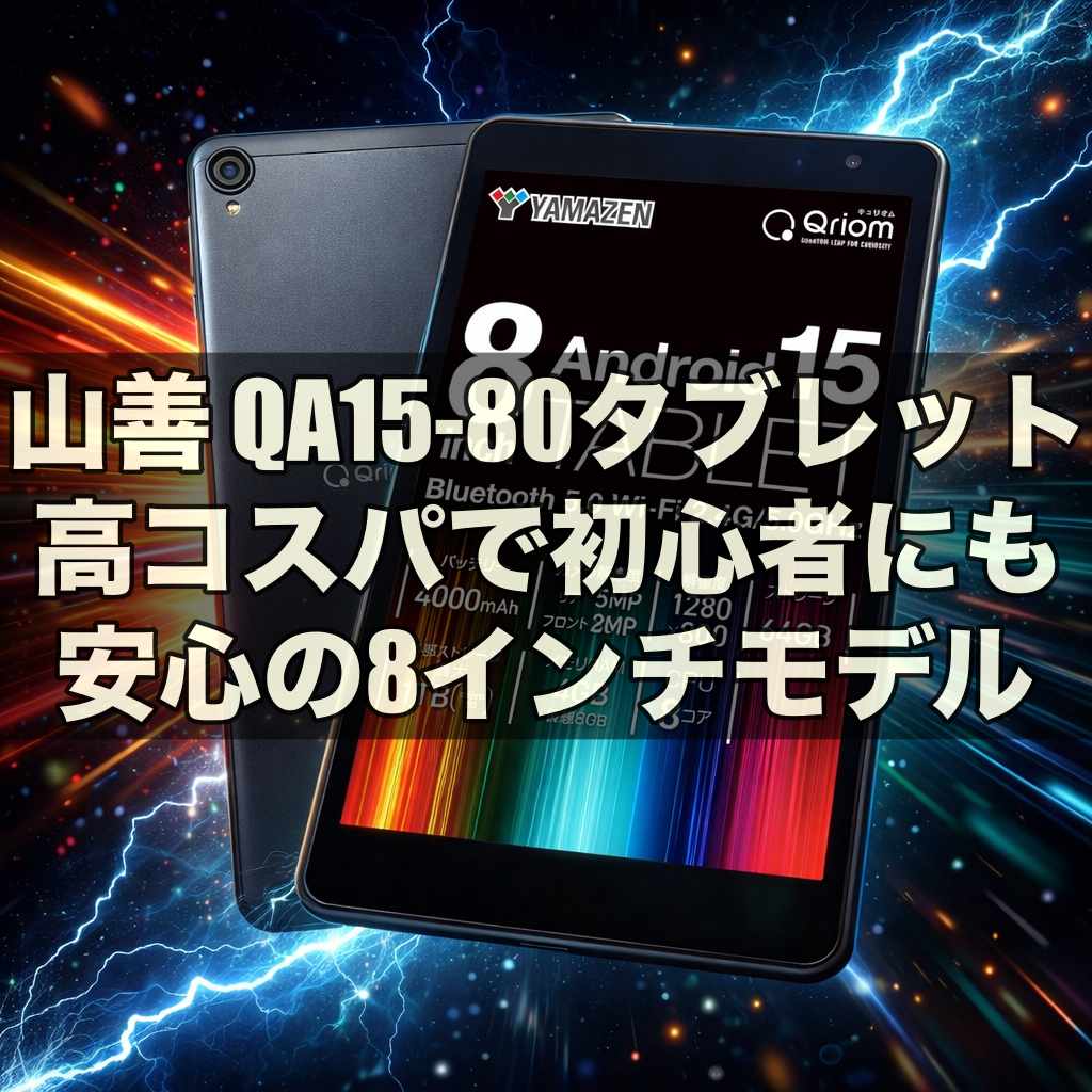 山善 QA15-80タブレットは、8インチの持ち運びやすいサイズに最新Android 15を搭載した、高コスパモデルとして注目されています。国内メーカー山善ブランドの安心感に加え、8コアCPUやGPS・ジャイロなど多彩なセンサーを備え、動画視聴からナビ、学習用途... -