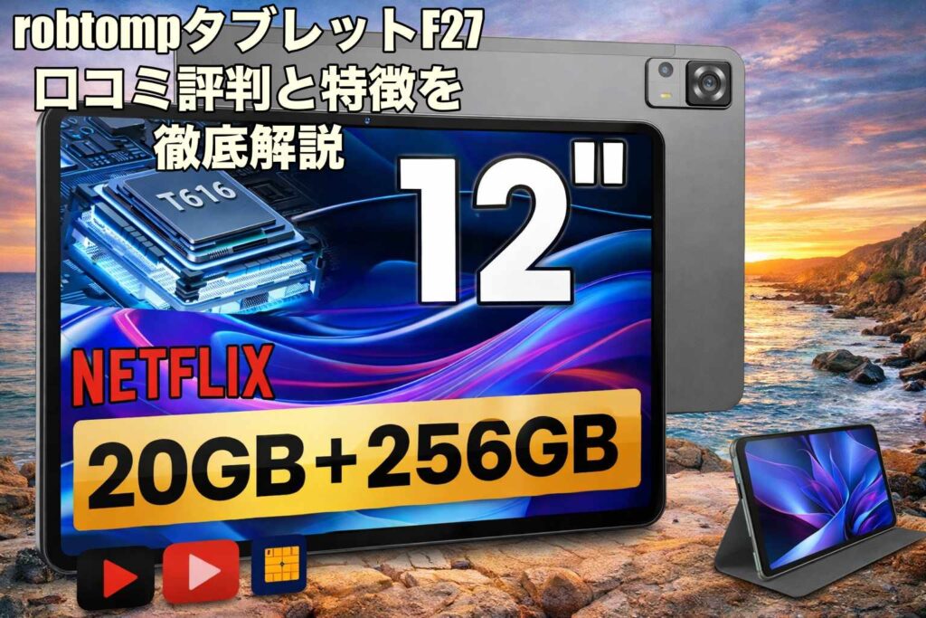 robtompタブレットF27は、12インチの大画面と2K高解像度ディスプレイを搭載したコスパの高いAndroidタブレットです。動画視聴や仕事、学習まで幅広く使える万能モデルとして注目されています。高性能8コアCPUや大容量ストレージにより、サクサク動く快適な... -