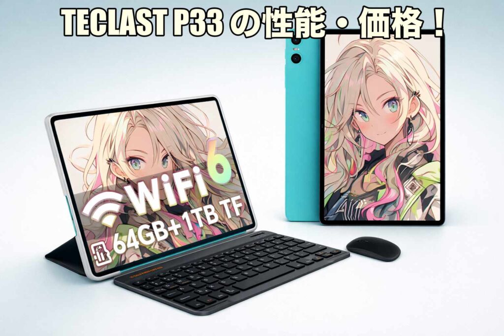 TECLASTタブレットP33 CASEは、キーボードやマウス、ケース、スタンドまで付属した、はじめてでも使いやすいAndroidタブレットです。動画鑑賞、読書、勉強、軽い作業まで1台でこなしやすく、追加購入を抑えやすいのが大きな魅力です。口コミでも、使い始め... -