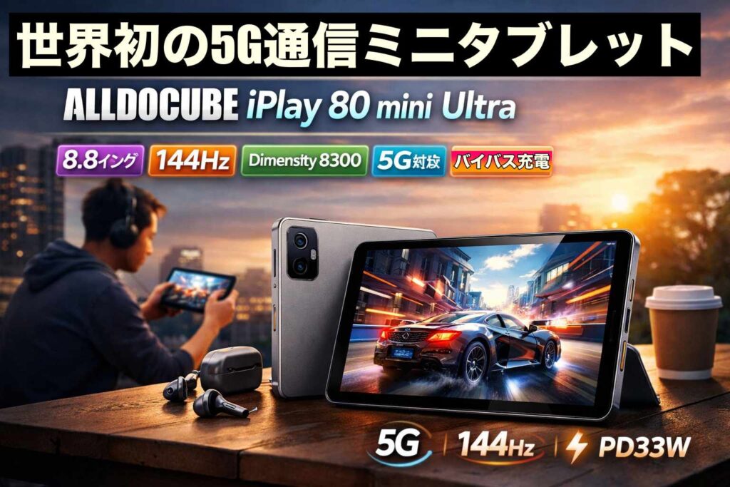 ALLDOCUBE iPlay 80 mini Ultraタブレットは、8.8インチの持ち運びやすいサイズに、Dimensity 8300、144Hzの高精細ディスプレイ、5G通信、バイパス充電まで詰め込んだ高性能モデルです。ゲームを快適に楽しみたい人はもちろん、動画視聴や電子書籍、外出先... -