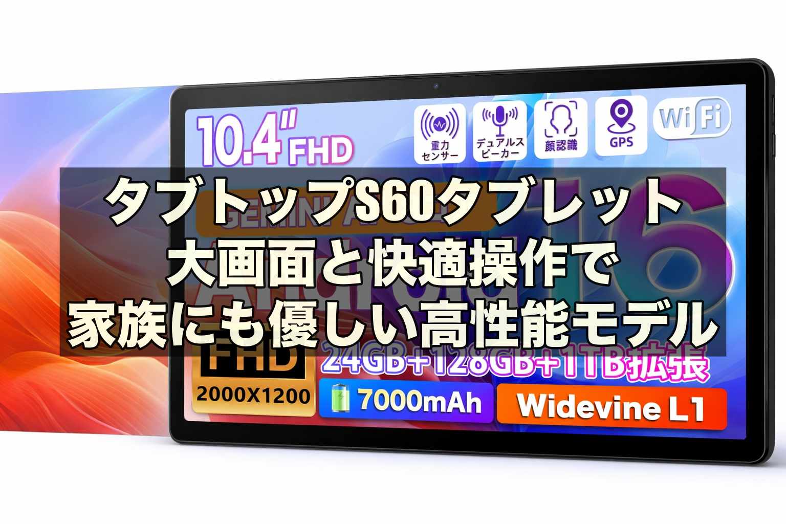 タブトップS60タブレットは、Android16搭載・10.4インチ2K大画面・24GBメモリという充実したスペックを備えながら、価格を抑えた高コスパモデルとして評価されています。口コミでは「画面が大きくて見やすい」「動作がサクサク」「高齢者や子供でも使いやすい」といった声が多く、動画視聴・読書・学習用タブレットとしての満足度は非常に高いです。Widevine L1対応により、NetflixやAmazon Prime Videoを高画質で楽しめる点も大きな魅力です。