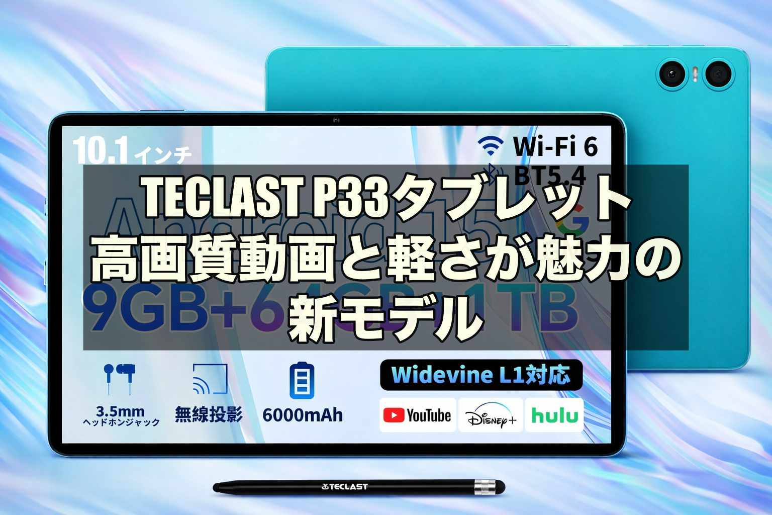 タブレット選びで「価格は抑えたいけれど、動画がきれいに見られるか不安」「動作が重くて後悔したくない」と感じている方は多いです。TECLAST P33タブレットは、2026年モデルとして登場した10インチAndroidタブレットで、Widevine L1対応による高画質動画再生と、軽量で扱いやすい設計が特徴です。Android 15 GOを搭載し、日常使いに十分な性能とコストパフォーマンスの高さが評価されています。実際の口コミでも、次のような声が見られます。