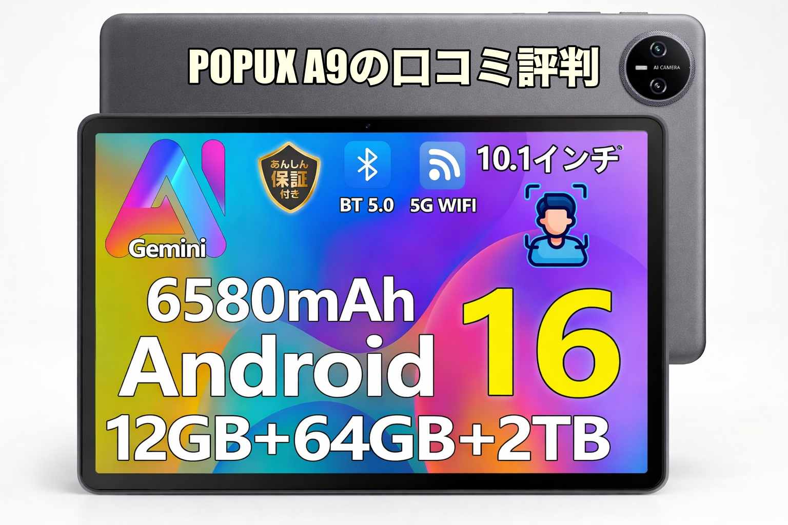 POPUXタブレットA9は、Android 16、GMS認証、10.1インチIPS画面、12GBメモリ相当、64GB保存、最大2TB拡張、Wi-Fi 6、顔認識、無線投影、6580mAhバッテリーなど、普段使いでうれしい機能がまとまった10インチwi-fiモデルです。こうした仕様から見ると、購入者からは使いやすさやコストパフォーマンスの面で良い評価が集まりやすい構成です。特に、動画視聴、ネット検索、学習、読書、家族共有用の用途では満足しやすい要素がそろっています。